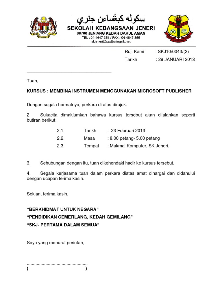 Contoh Surat Jemputan Kursus Pdf